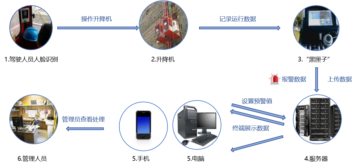升降機(jī)安全監(jiān)控系統(tǒng),由升降機(jī)電源控制系統(tǒng)、數(shù)據(jù)顯示系統(tǒng)、重量傳感器、高度傳感器、人臉識(shí)別儀等組成